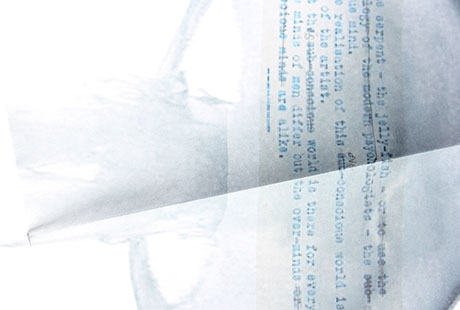 HD's notes on thought and vision takes the jellyfish as an erotic symbol of creative force, printed on bible paper to evoke 'flimsy' typewriter paper and the translucency of the visceral qualities HD refers to in her text.